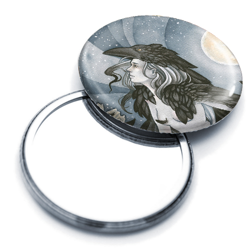 Pocket Mirrors are 2.5" in diamater, with a mirror on one side, and an image on the other. These single sided, open faced mirrors are slim enough to fit into your pocket, pocketbook, or wallet.