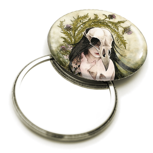 Pocket Mirrors are 2.5" in diamater, with a mirror on one side, and an image on the other. These single sided, open faced mirrors are slim enough to fit into your pocket, pocketbook, or wallet.